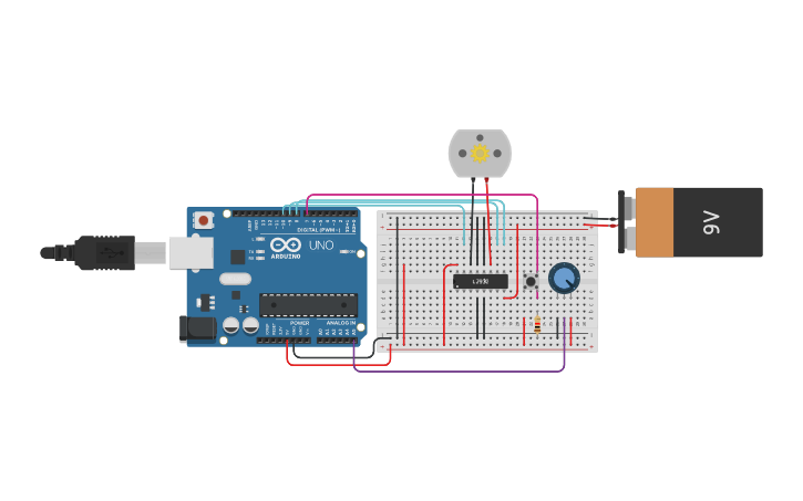 Circuit design DC motor speed control using potentiometer - Tinkercad