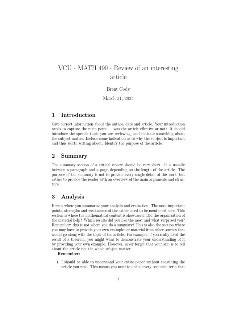 VCU MATH 490 Review of An Interesting Article | PDF | Mathematics ...