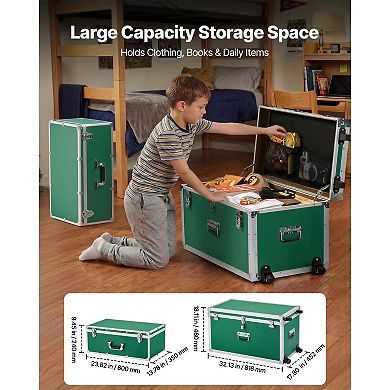 VEVOR Metal Storage Trunk,Set of 2,Wooden Suitcase Storage Boxes with ...
