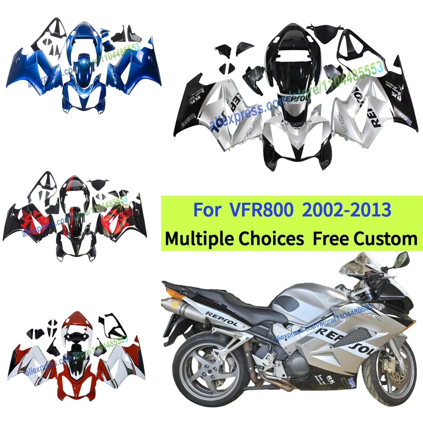Honda VFR800 Fairings (2002-2013) Silver, Black Repsol