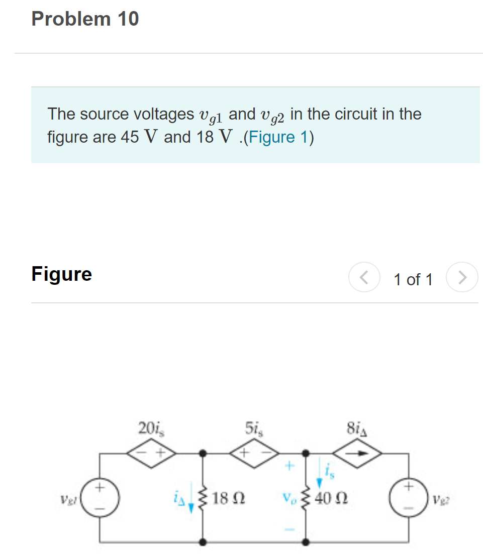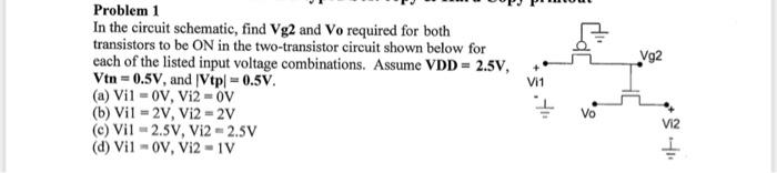 Solved Problem 1 In the circuit schematic, find Vg2 and V0 | Chegg.com