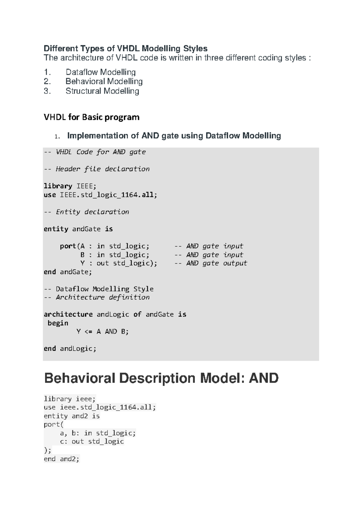 VHDL Modelling Styles: Dataflow, Behavioral, and Structural - Studocu