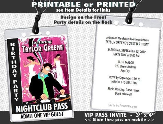 Personalised Disco Party Style Music Vip Passes Lanyards / Invitations ...