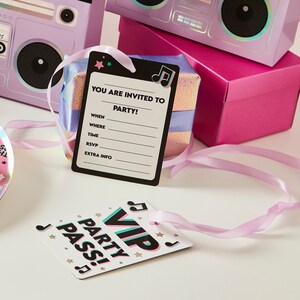 Personalised Disco Music Party Style VIP Pass & Lanyard Invitations ...