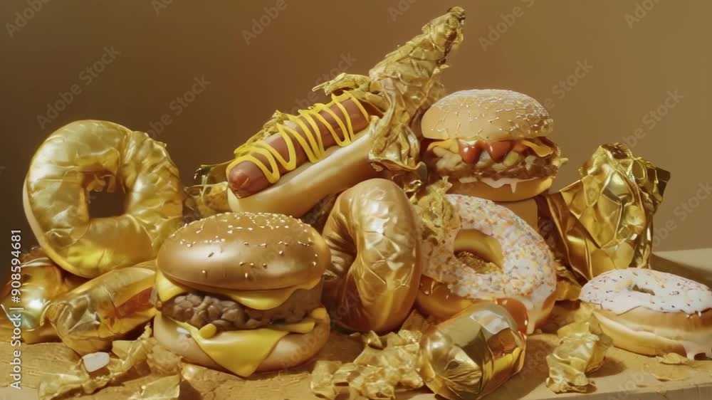 Video concept showcasing VIP fast food with donuts, ice cream, burgers ...