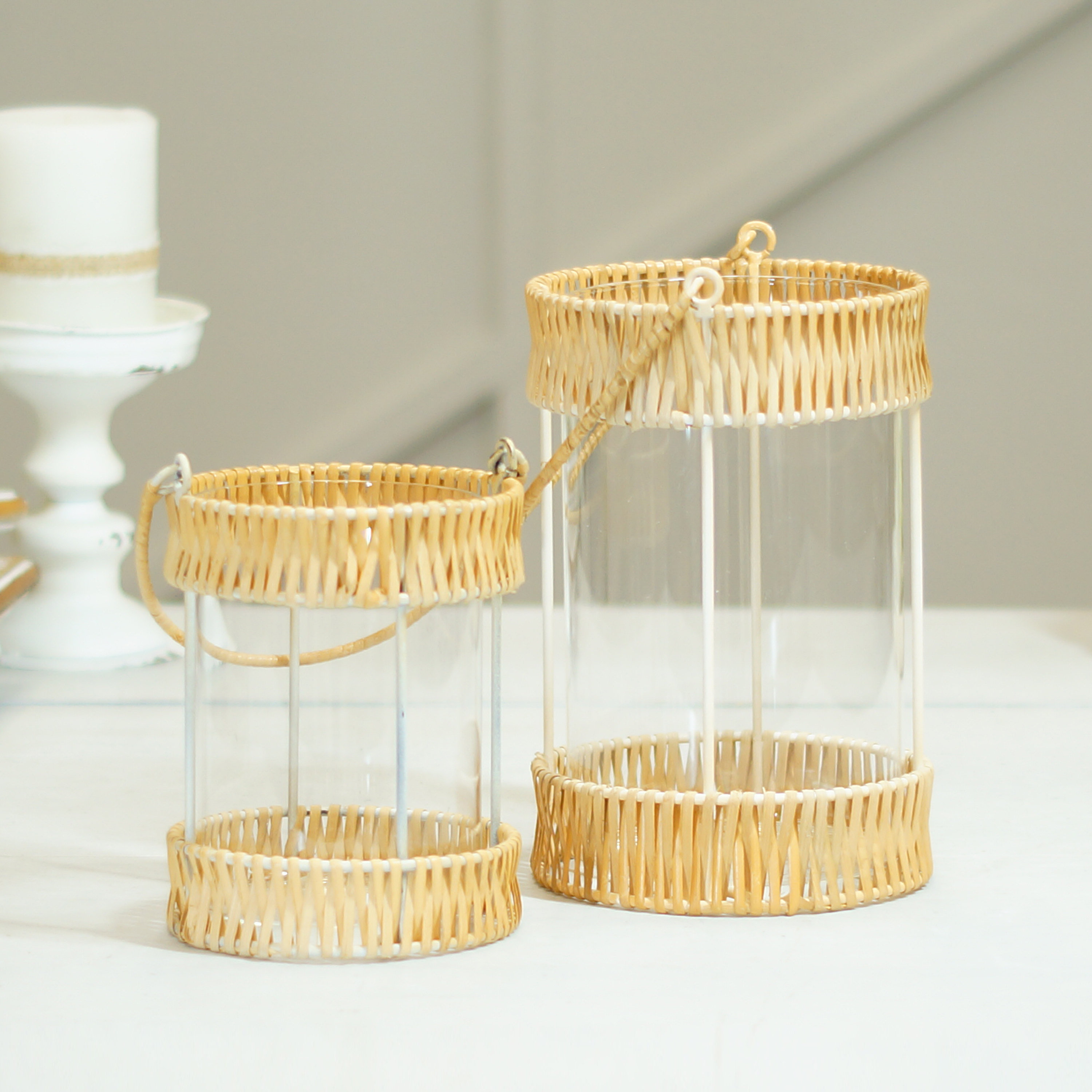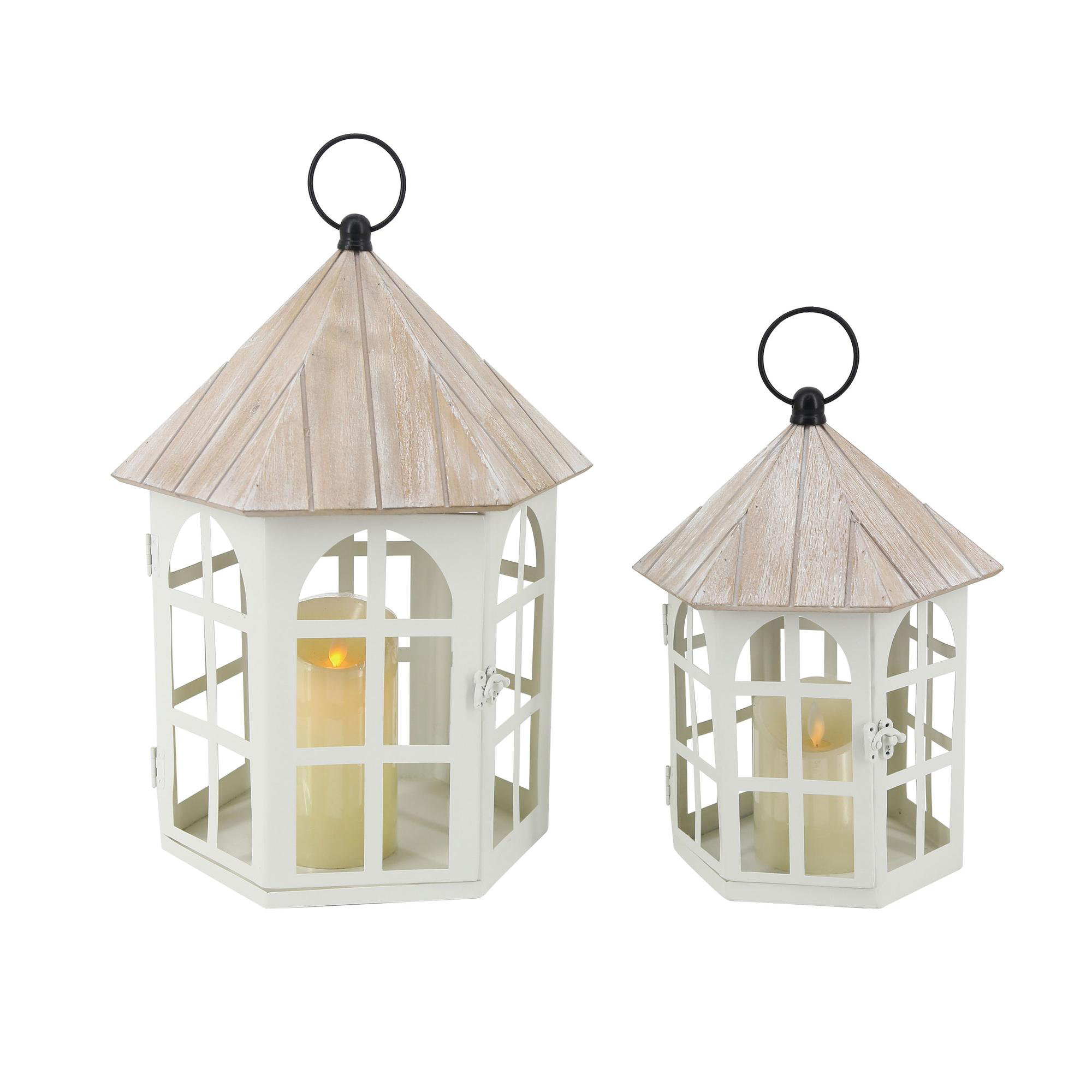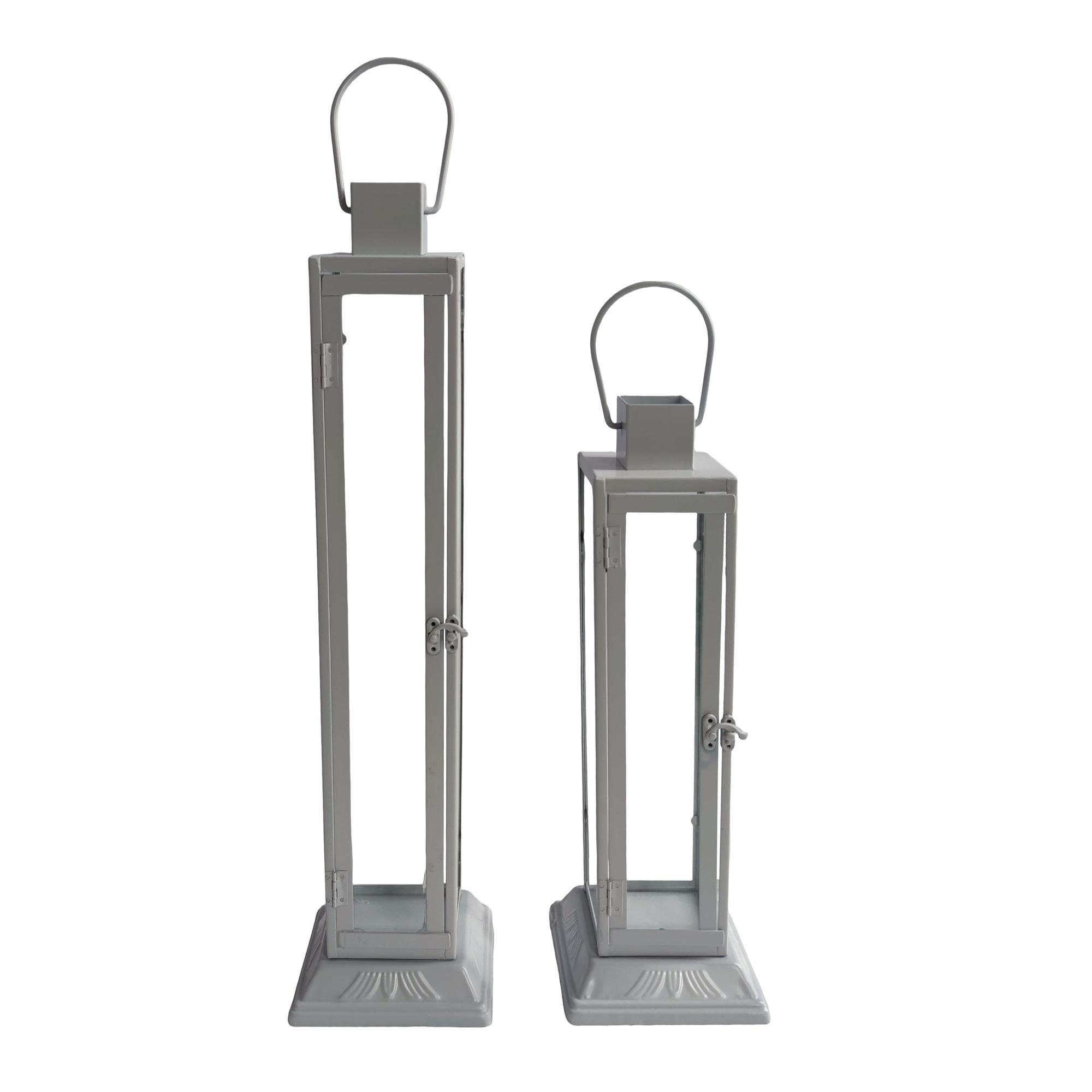 Gracie Oaks VIP Metal 22 in. White Metal Lantern with Glass Set of 2 ...