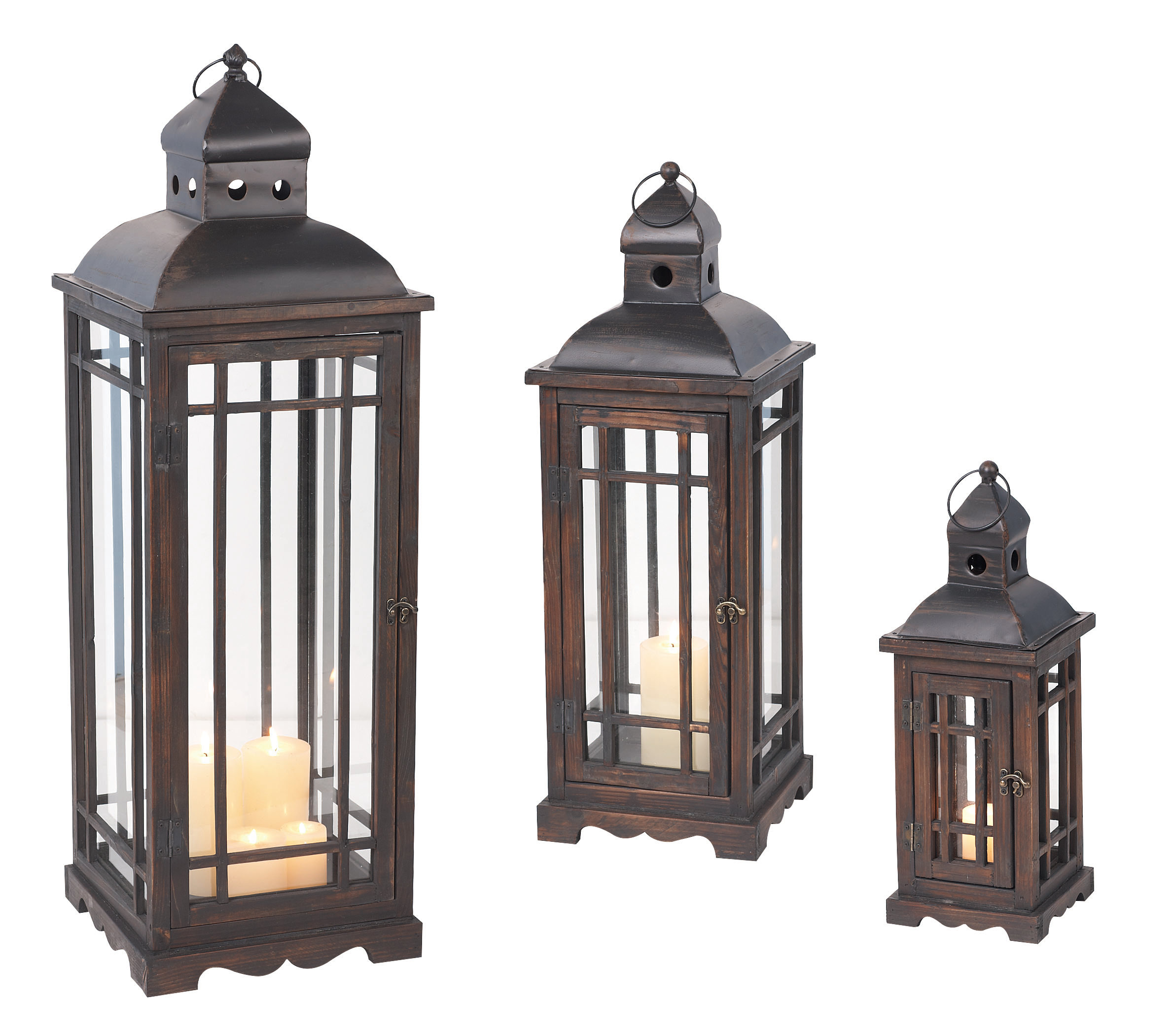 17 Stories VIP Wood 10 in. Brown Lantern with Top Holder | Wayfair