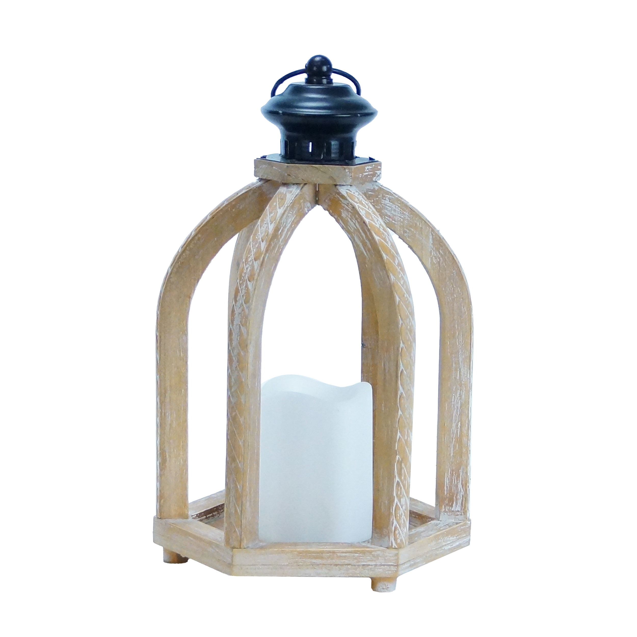 Ophelia & Co. VIP Wood 13 in. Brown Lantern with LED Candle | Wayfair