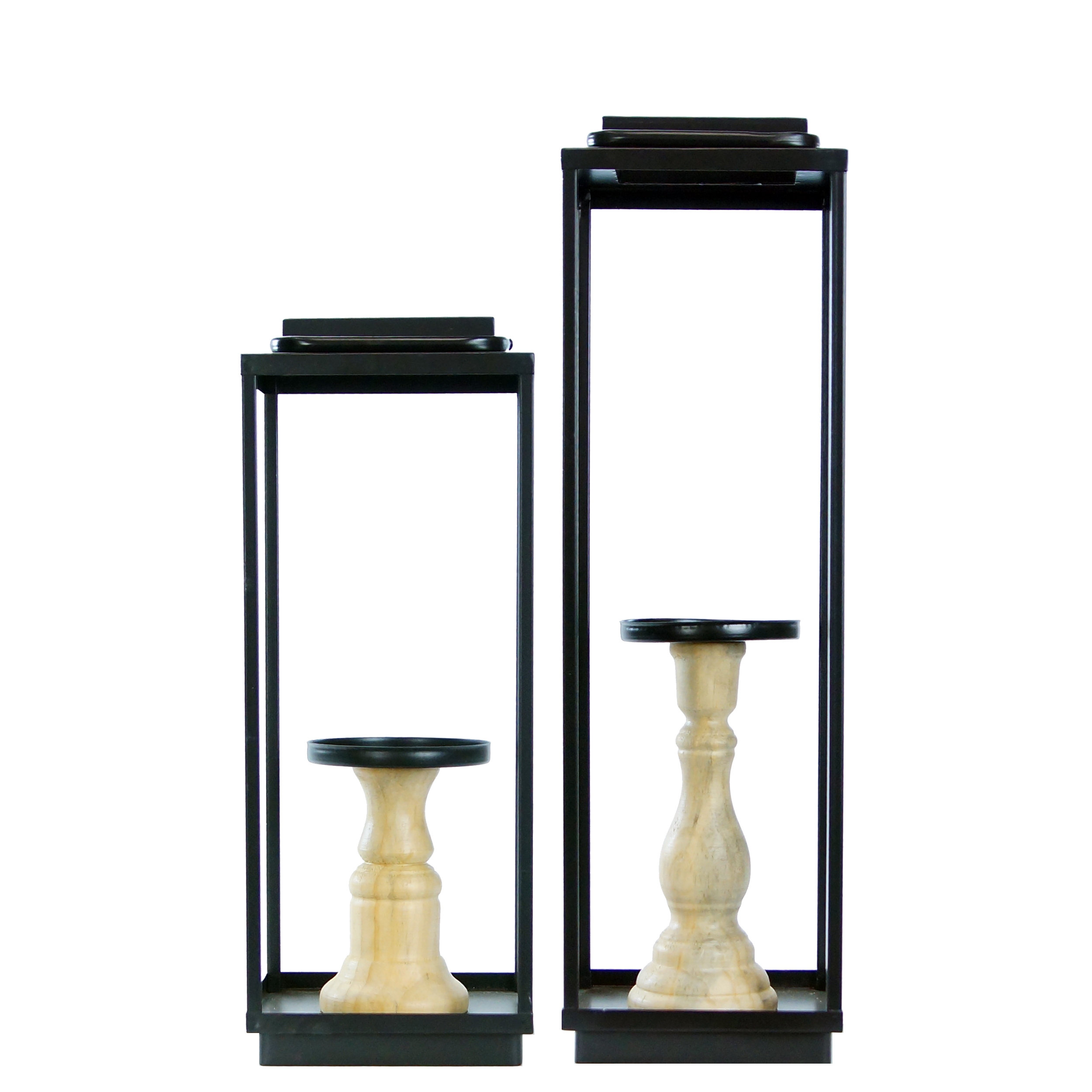 August Grove® VIP Metal 20 in. Black Lantern Candle Holders Set of 2 ...
