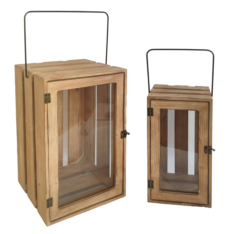 Millwood Pines VIP Wood 17.75 in. Brown Wooden Crate Lantern with Glass ...