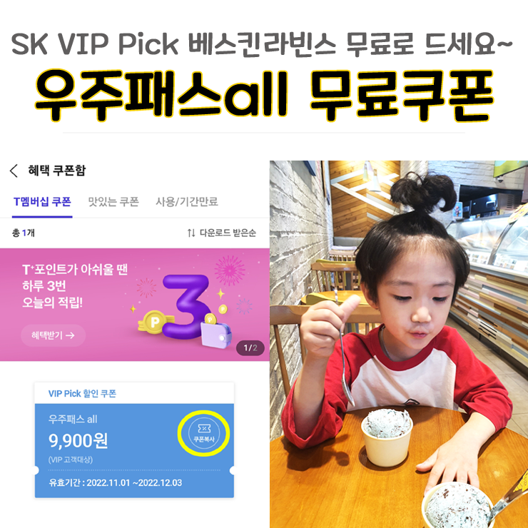 SKT VIP Pick 우주패스ALL 무료 쿠폰 적용부터 해지까지 쉽게 알려드려요(feat. T멤버십혜택 베스킨라빈스 무료 ...
