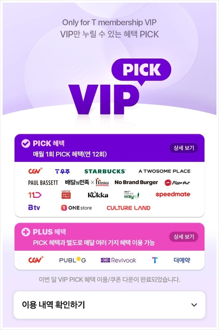 T멤버십 VIP Pick 혜택, 매월 잊지 말고 챙기세요.