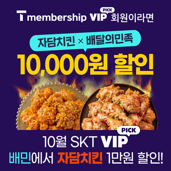 자담치킨, SKT VIP PICK 회원 대상 배달의민족 할인 쿠폰 제공