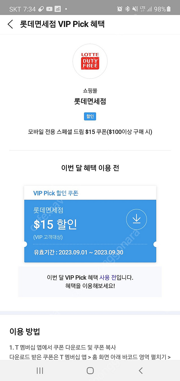 skt vip pick 롯데면세점 15불 쿠폰 | 중고나라 카페에서 운영하는 공식 사이트