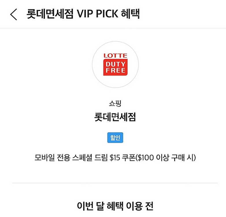 vip pick 롯데면세점 15$ 할인쿠폰 | 중고나라 카페에서 운영하는 공식 사이트