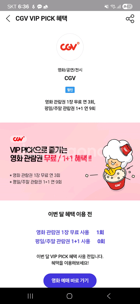 SKT VIP PICK 으로 월 1회 무료 영화 관람 방법! 0원으로 문화생활 즐기자! : 네이버 블로그