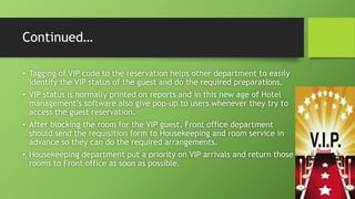 Front Office(Pre-arrival procedure for FIT, VIP & Groups) | PPTX