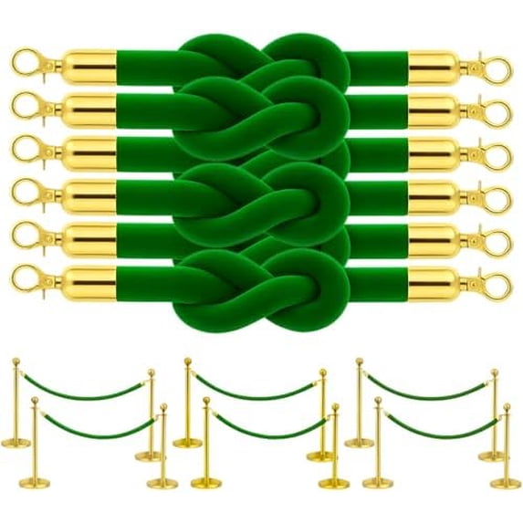 6 Pack Green Velvet Rope 5 Foot with Gold Hooks – Premium Stanchion ...