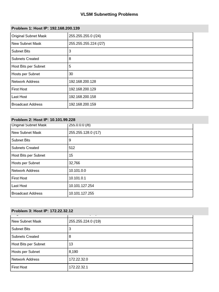 VLSM Subnetting Problems | PDF | Ip Address | Network Protocols