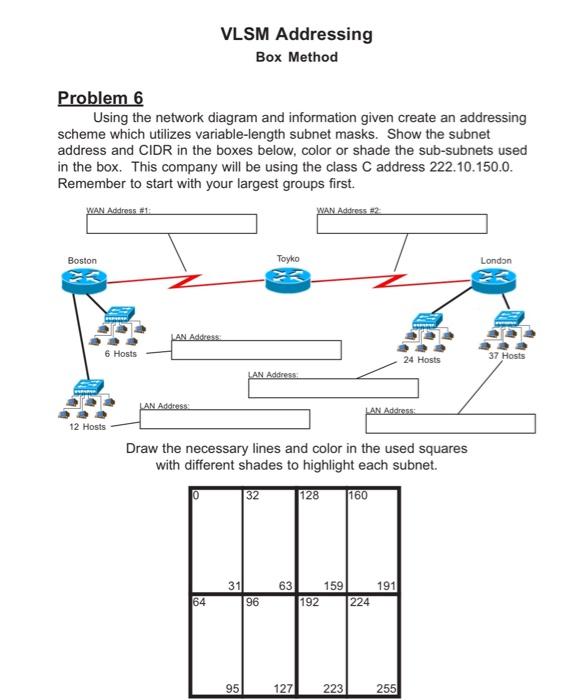 Solved VLSM Addressing Box Method Problem 6 Using the | Chegg.com