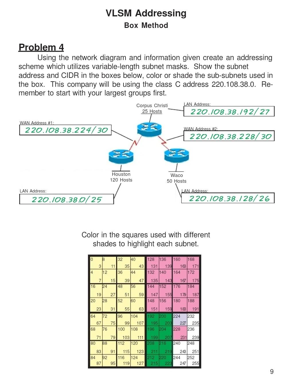 Solved VLSM Addressing Box Method Problem 3 Using the | Chegg.com