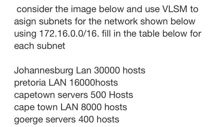Solved consider the image below and use VLSM to asign | Chegg.com
