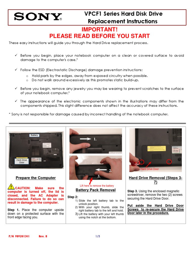 Vpcf1 Series HDD Replacement | PDF | Hard Disk Drive | Electrostatic ...