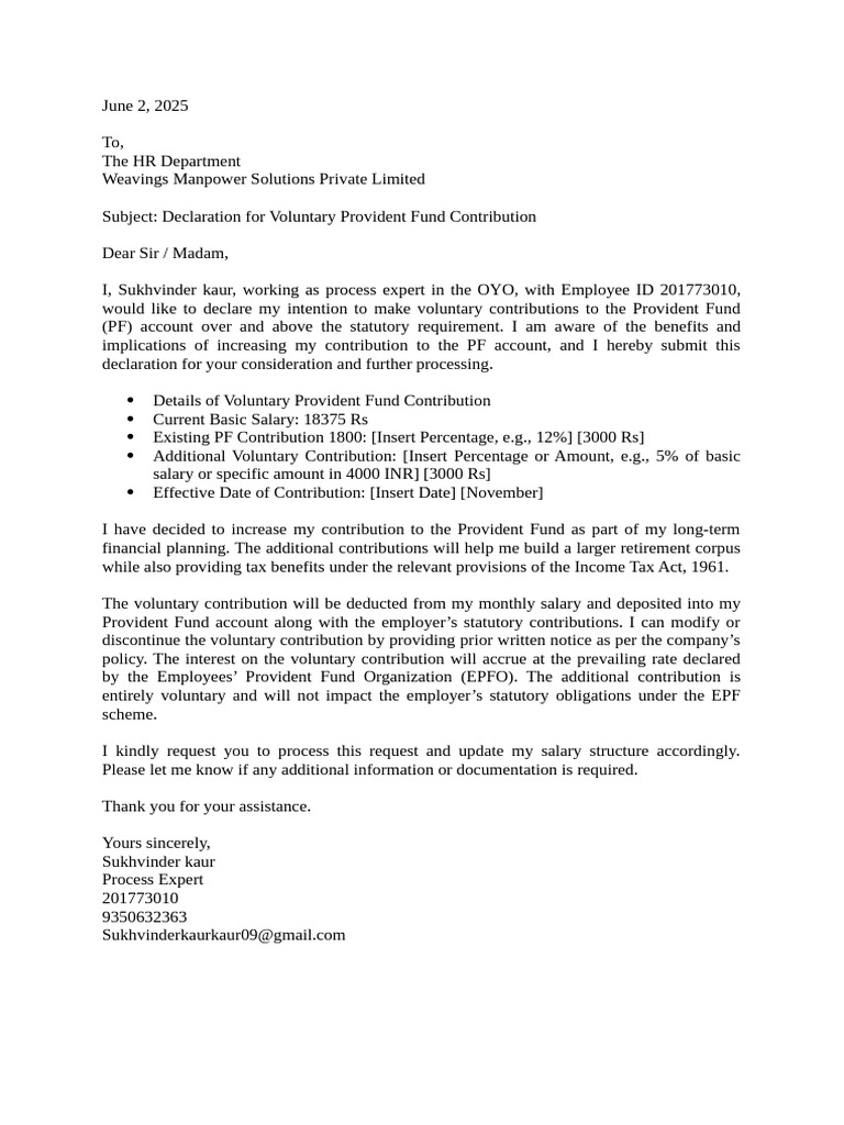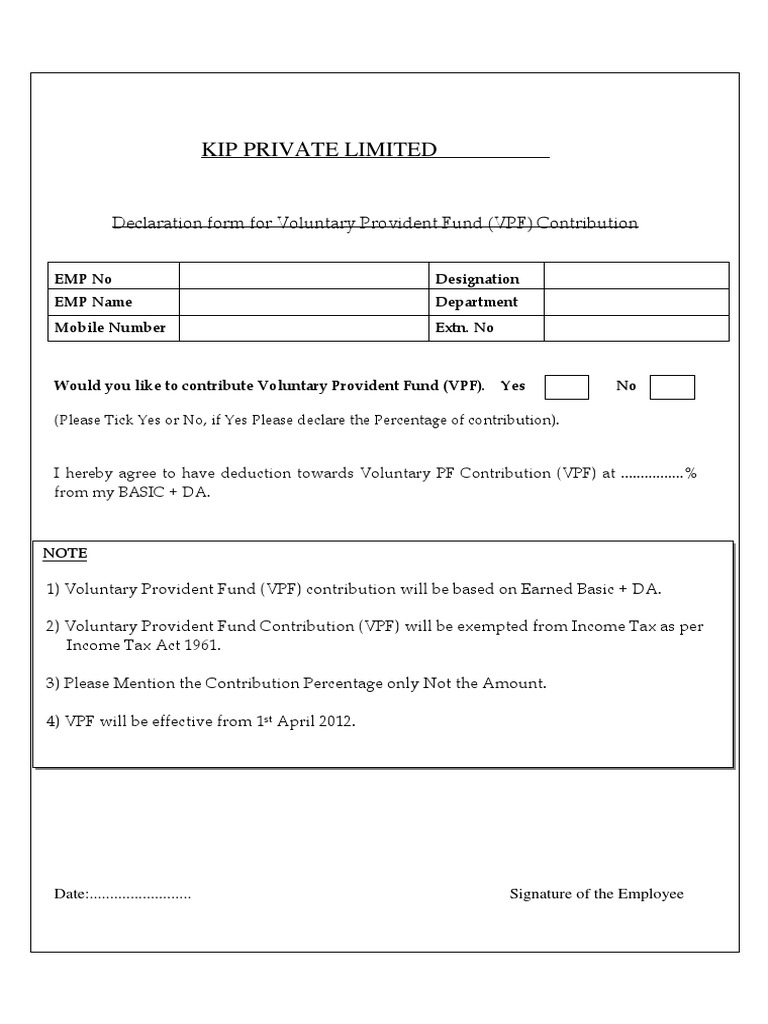 VPF Contribution Declaration Form | PDF | Career & Growth | Business