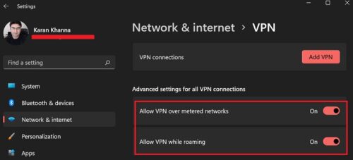 How To Turn On/Off VPN For Roaming And Metered Connection In Windows 11?