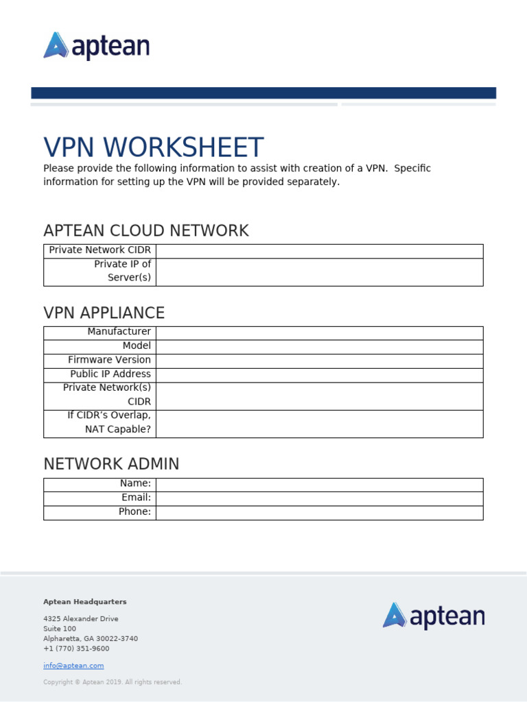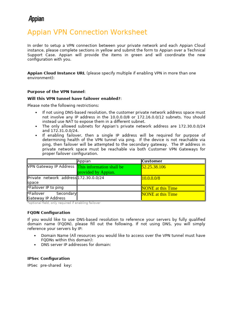 Appian VPN Worksheet | PDF | Virtual Private Network | Ip Address