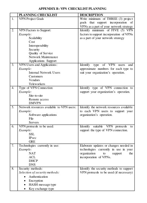 Solved 1. 2 Cost 3. 4. APPENDIX B: VPN CHECKLIST PLANNING | Chegg.com
