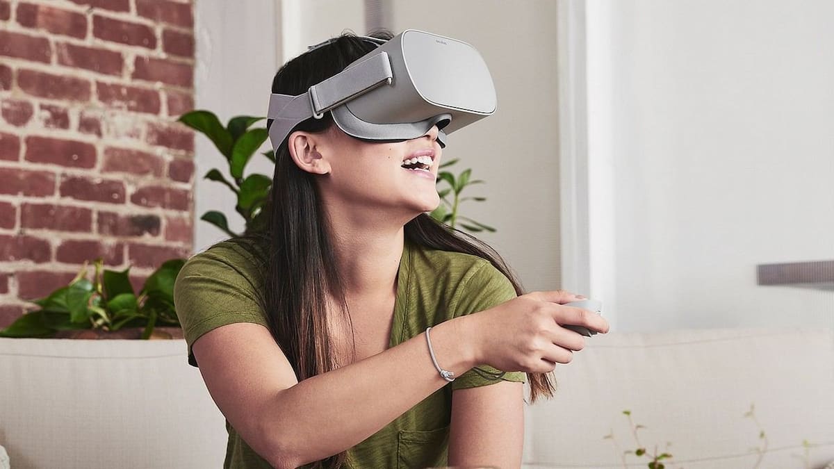 Premium Photo | Happy young person use smartphone and vr headset ...