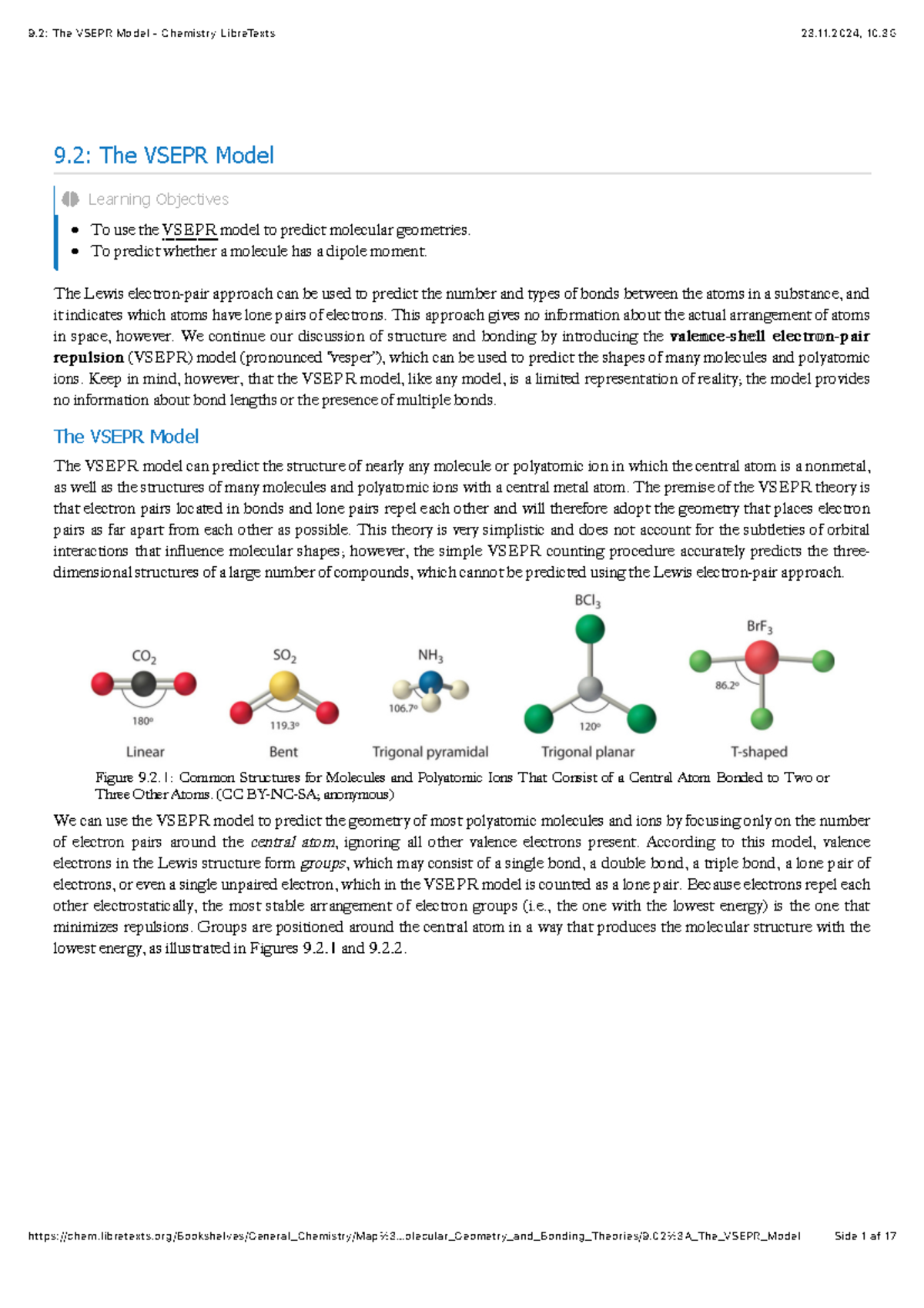 9.2: VSEPR Model for Predicting Molecular Geometries - Chemistry - Studocu