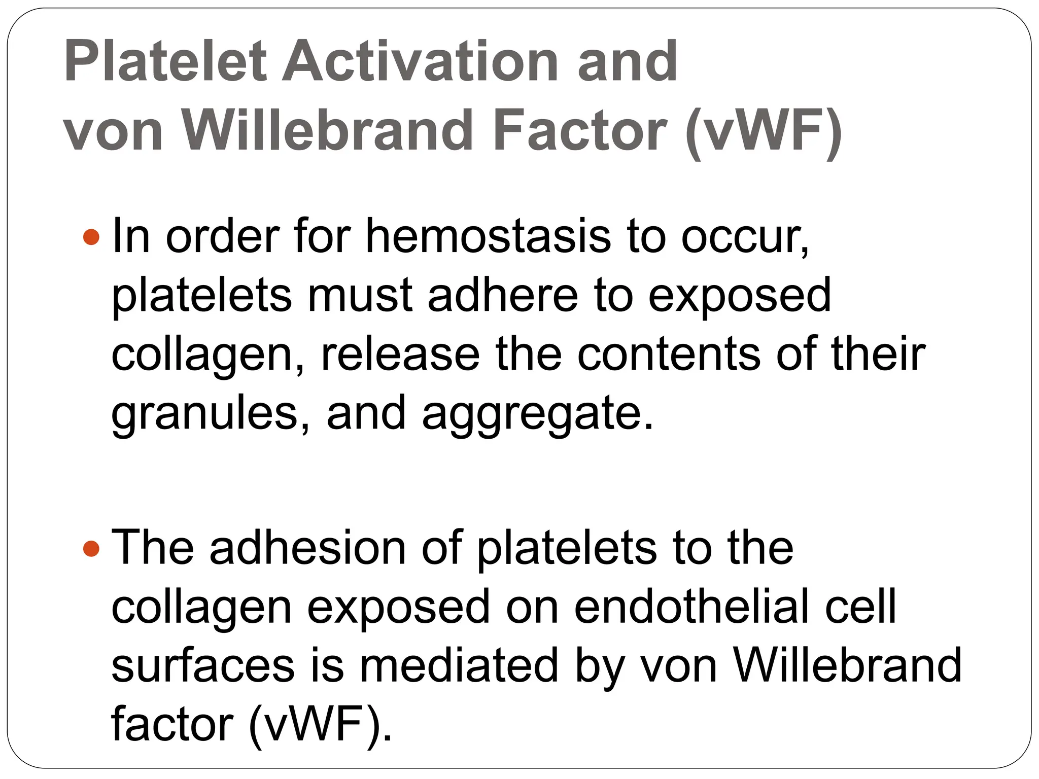 Von Willebrand Factor (vWF) - Platelets - Coagulation - Hemostasis ...