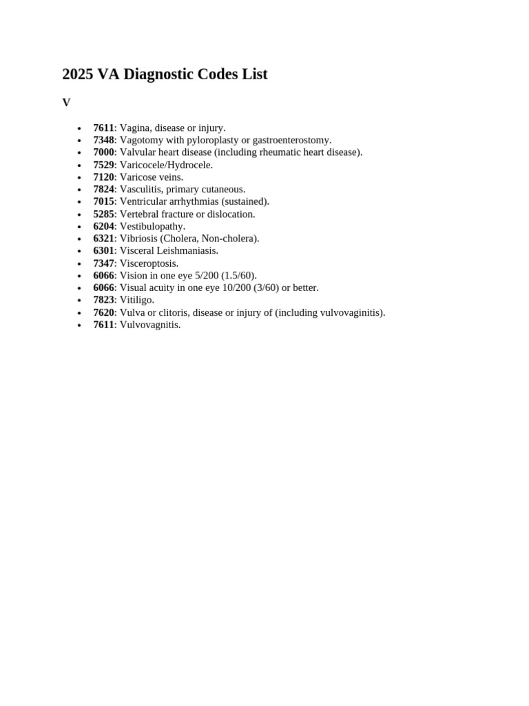 2025 VA Diagnostic Codes List V | PDF