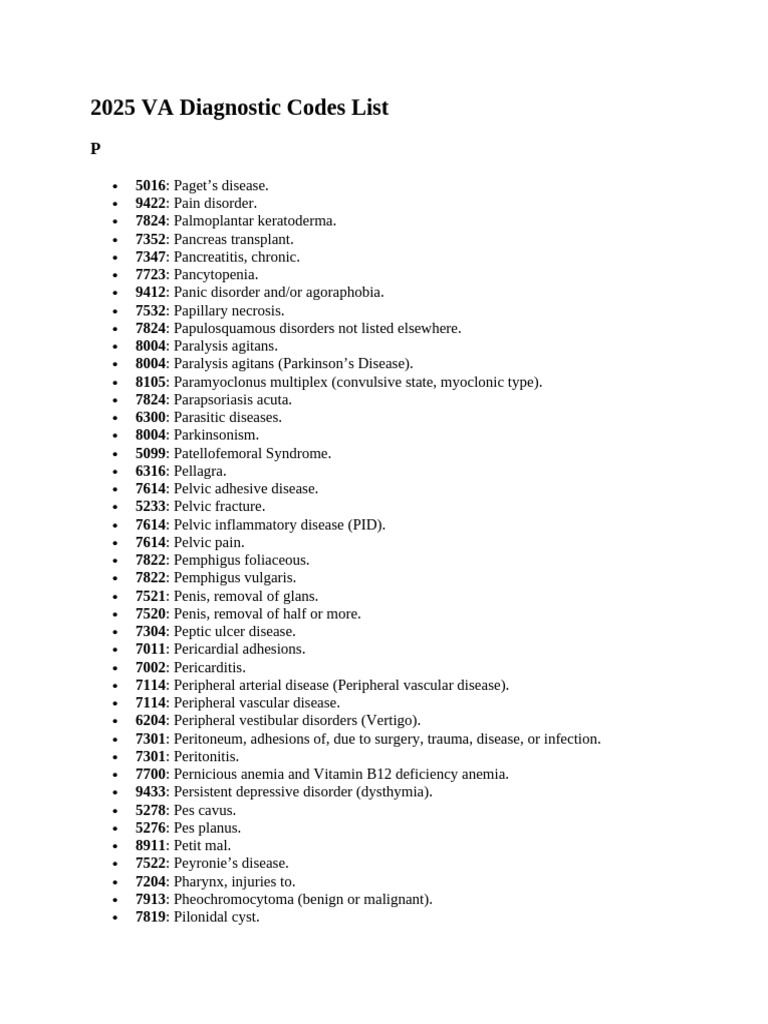 2025 VA Diagnostic Codes List P | PDF | Diseases And Disorders ...