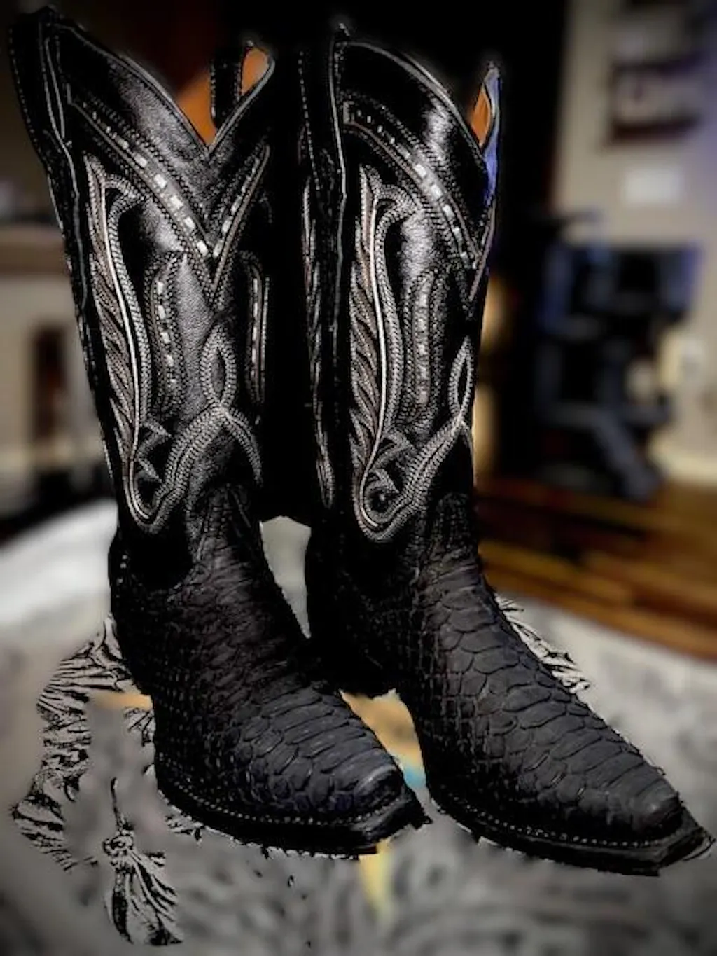 Men's Vaccari Black Python Broad Square Toe Cowboy Boots