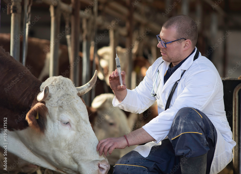 Veterinarian holding syringe for cattle vaccination in stable Stock ...