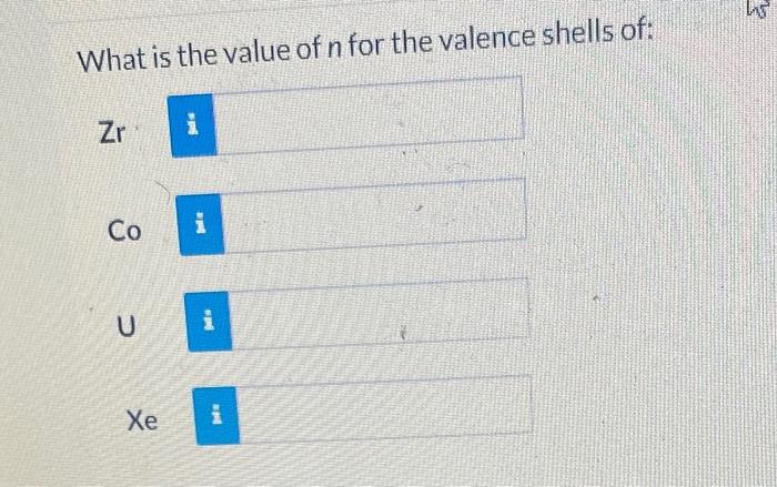 Solved What is the value of n for the valence shells of: | Chegg.com