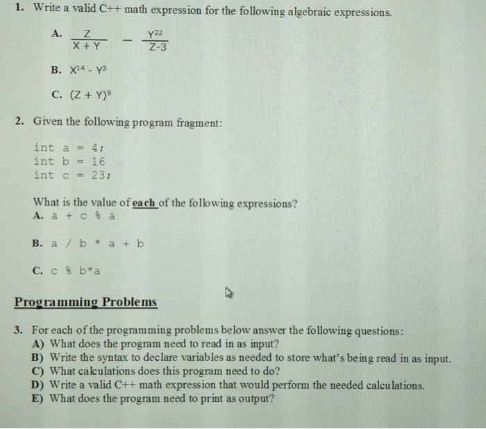 Solved Write a valid C++ math expression for the following | Chegg.com