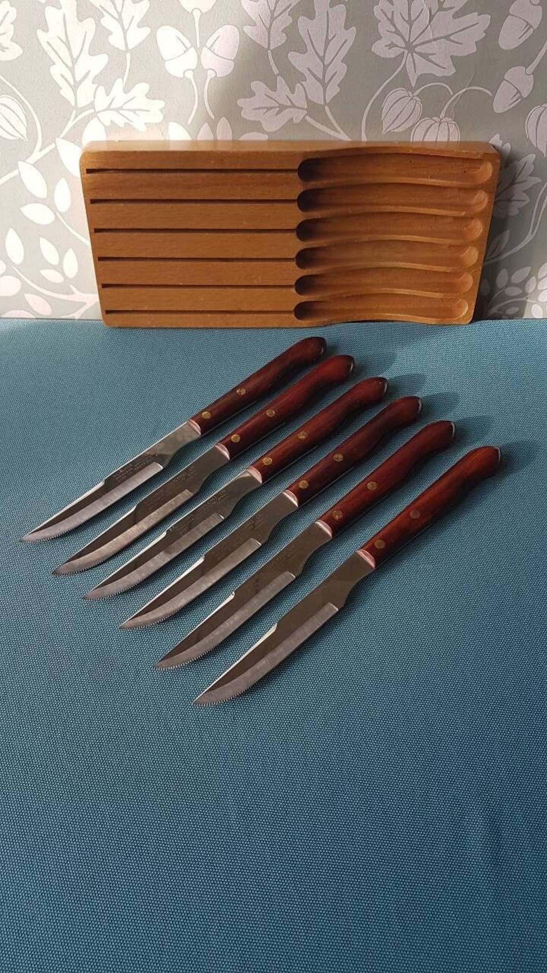 Set of 6 Vintage Teak Steak Cutlery-in Beech Block-richards cutlersltd ...