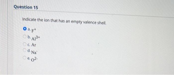Solved Indicate the ion that has an empty valence shell. a. | Chegg.com