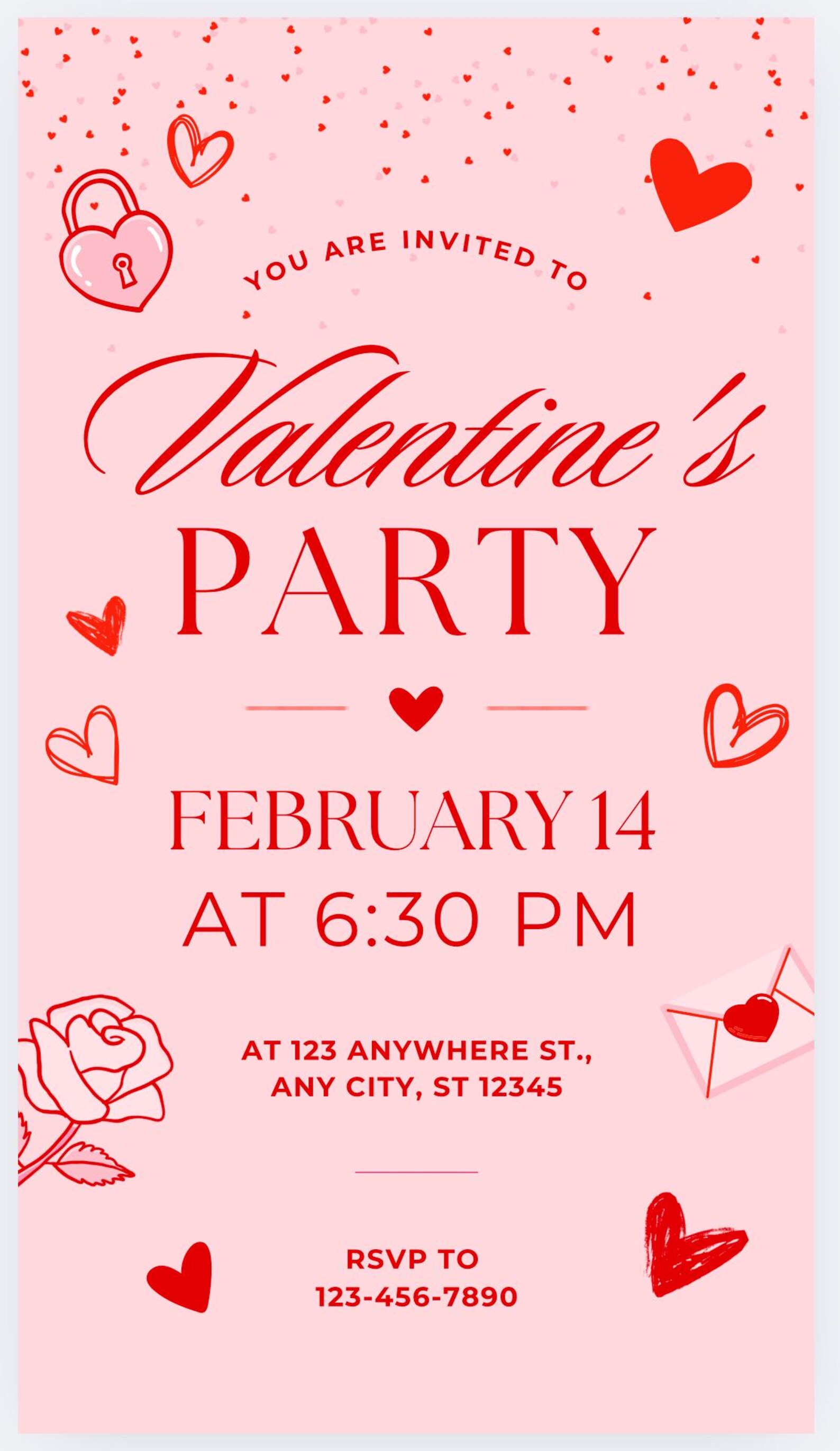Printable Valentine Day Party Invitation Template | PosterMyWall