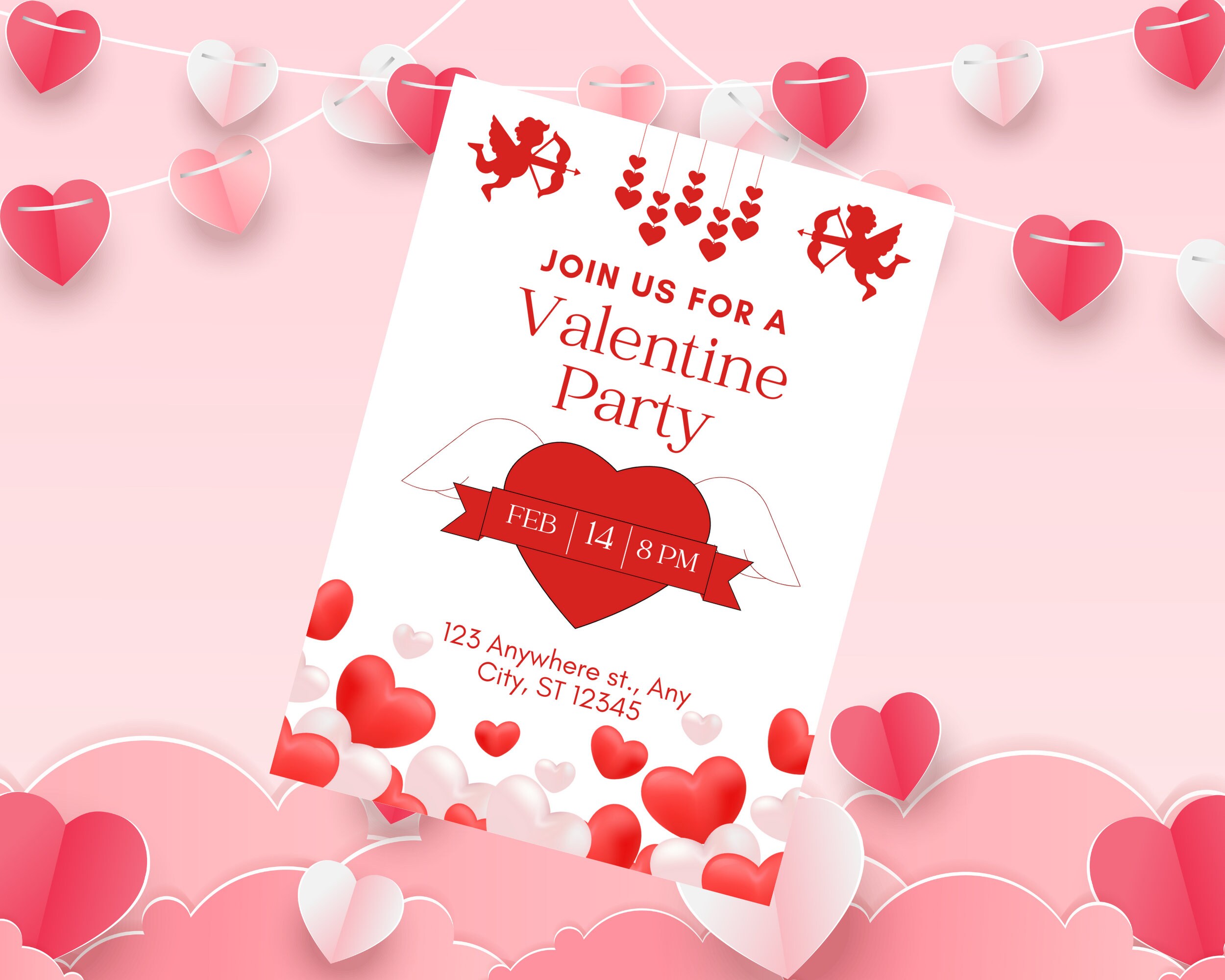 Heart Valentine Party Invitation, Digital Valentine’s Day Invite, Pink ...