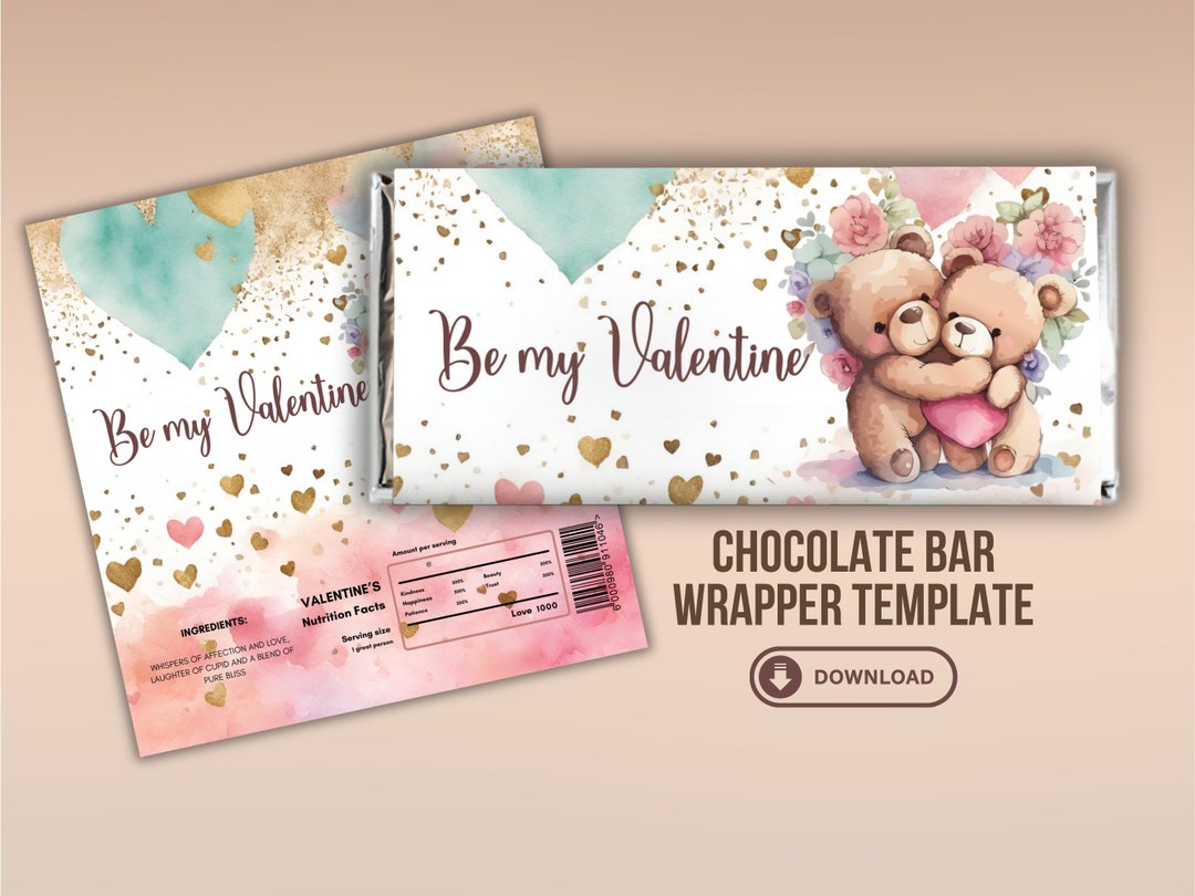 Valentine Candy Bar Wrappers Template Printable Chocolate - Etsy