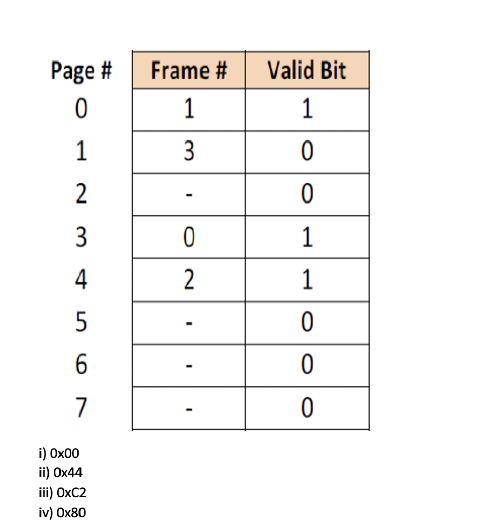 Solved Frame # Valid Bit Page # 0 1 1 1 3 0 2. 0 3 O 1 4 2 1 | Chegg.com