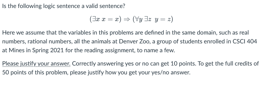 Solved Is the following logic sentence a valid sentence? (Ex | Chegg.com