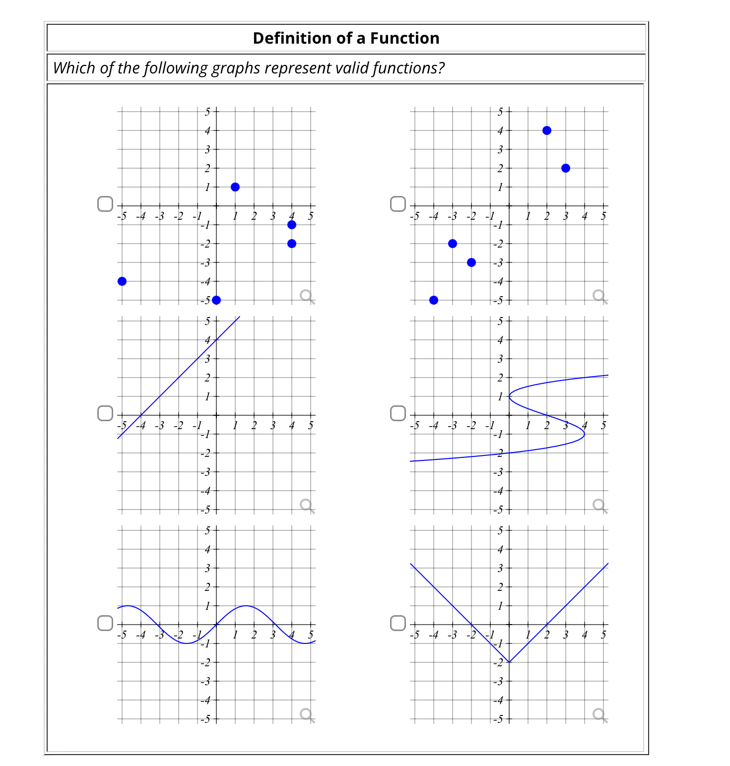Definition of. Function Which of the following graphs represent valid ...