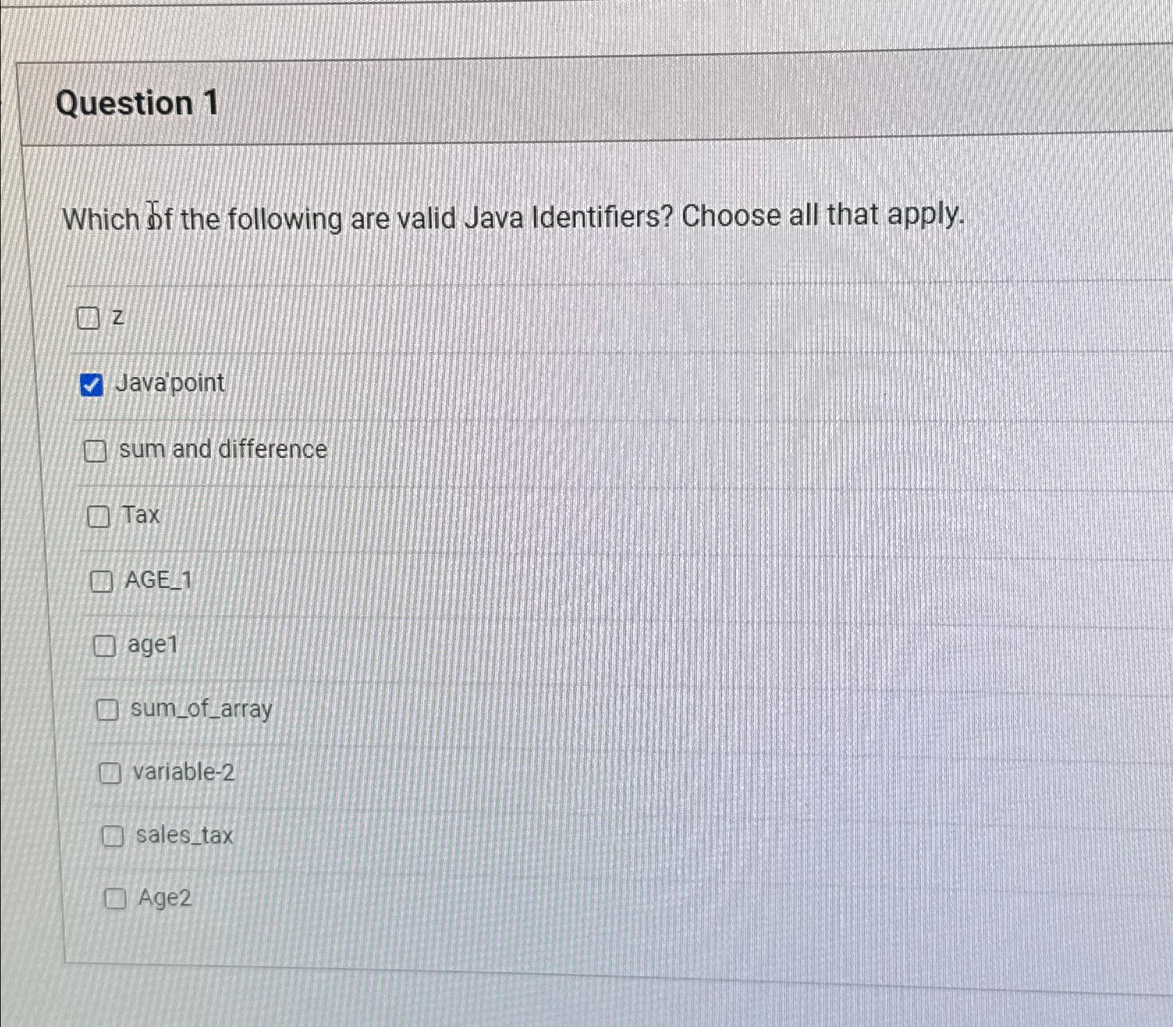 Solved Which of the following are valid Java Identifiers? | Chegg.com