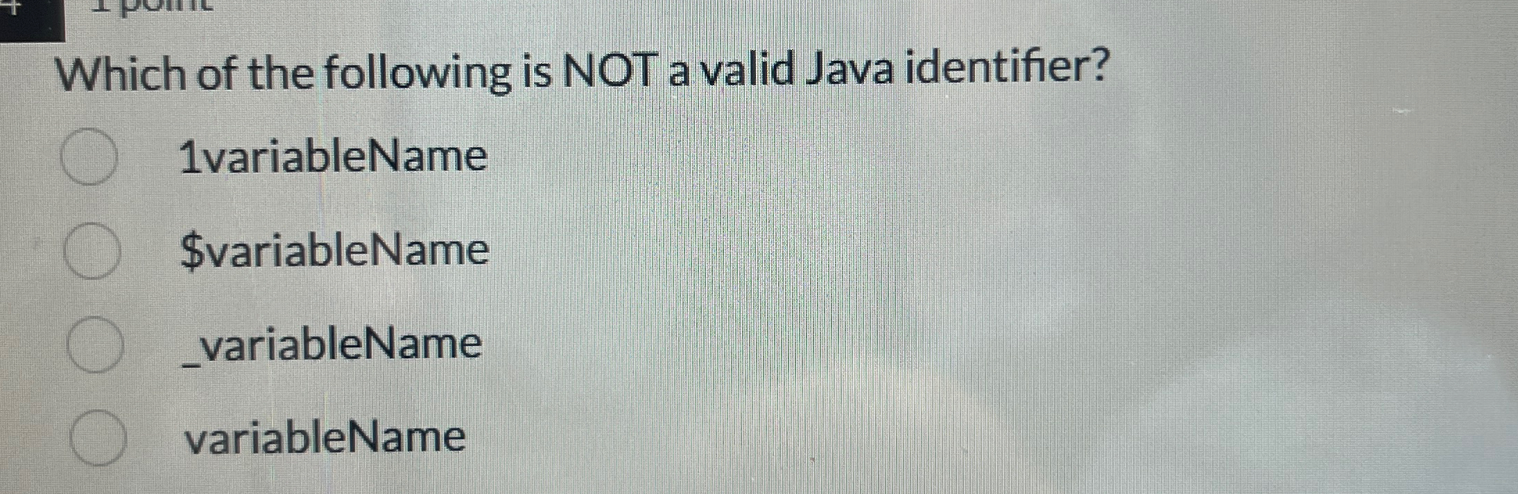 Solved 1. Which of the following is not a valid Java | Chegg.com